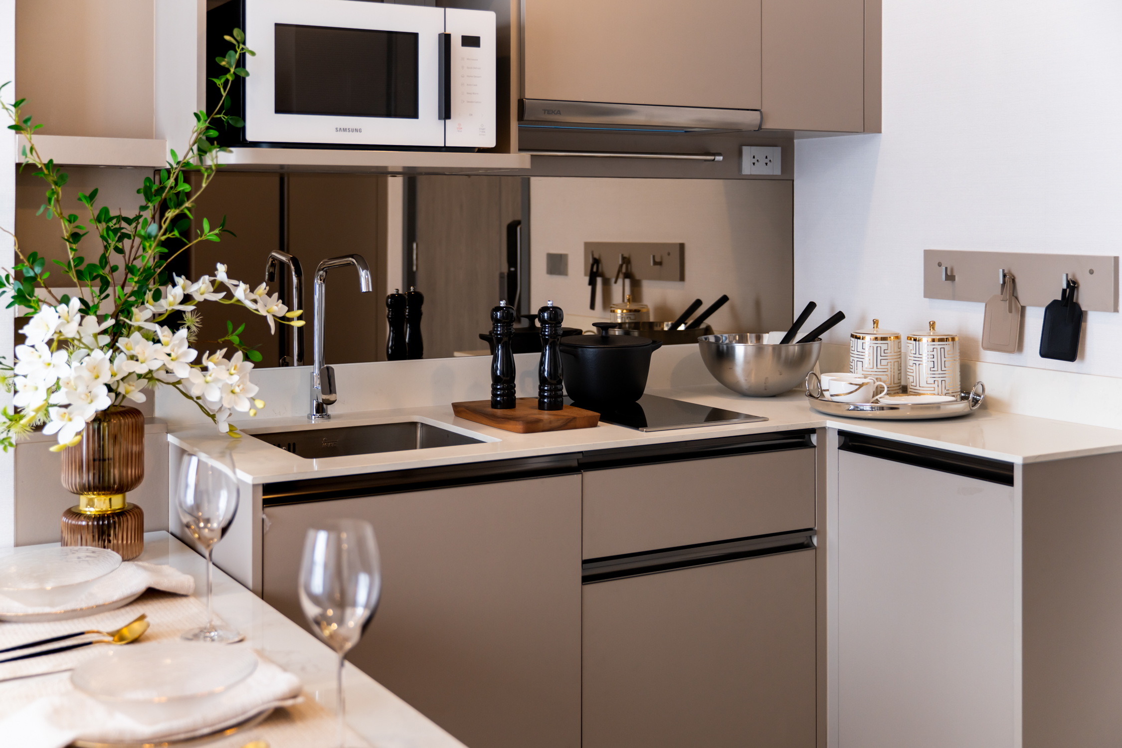 A hotel-style reception welcomes you with sophisticated modernist design and warm hospitality. Every arrival feels curated.